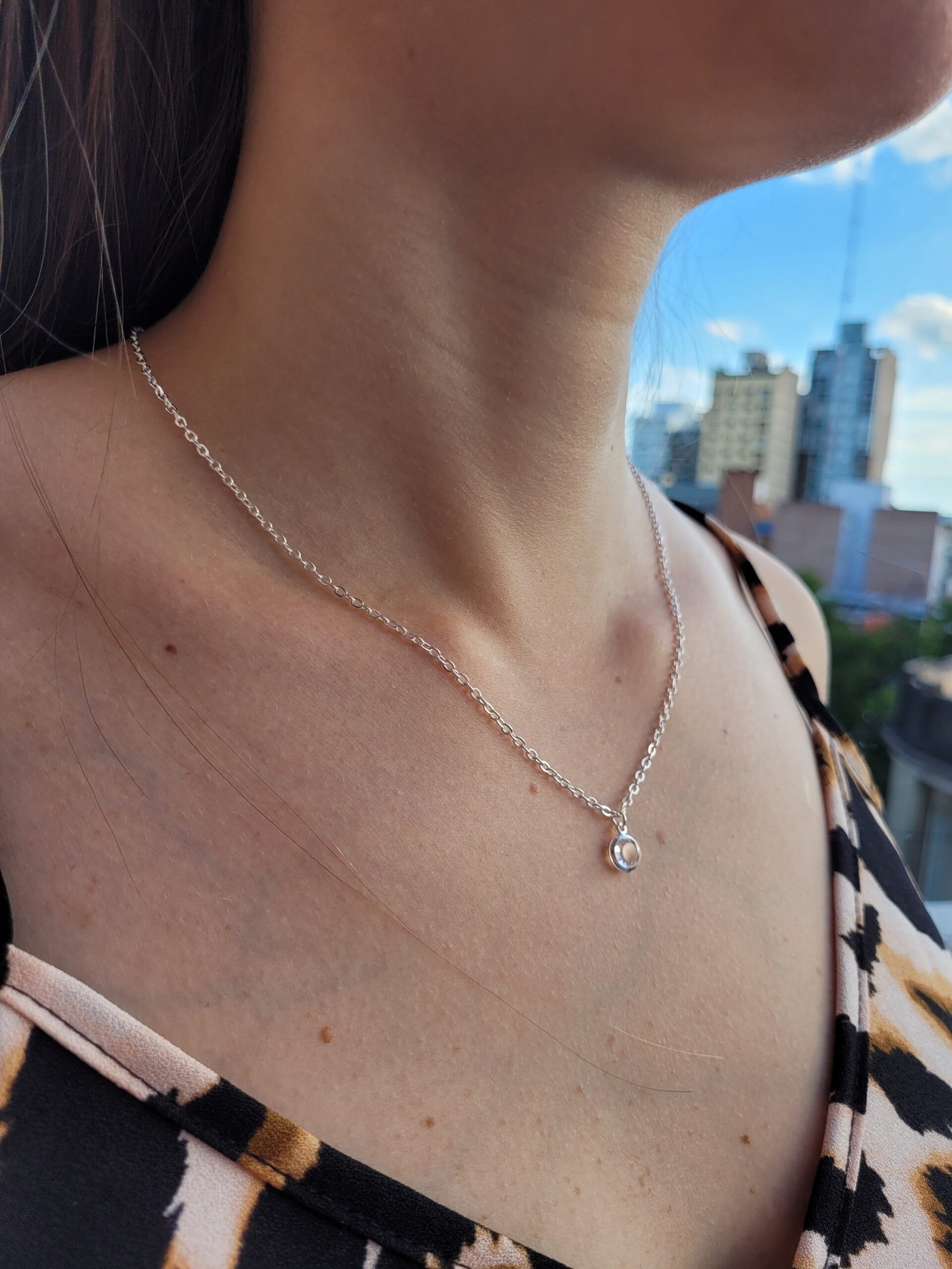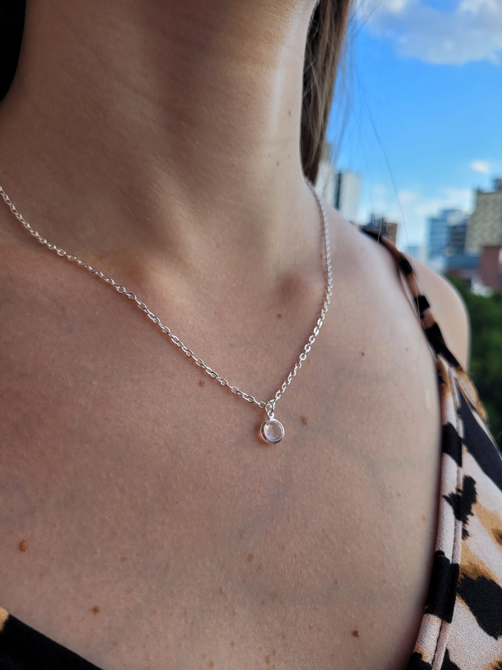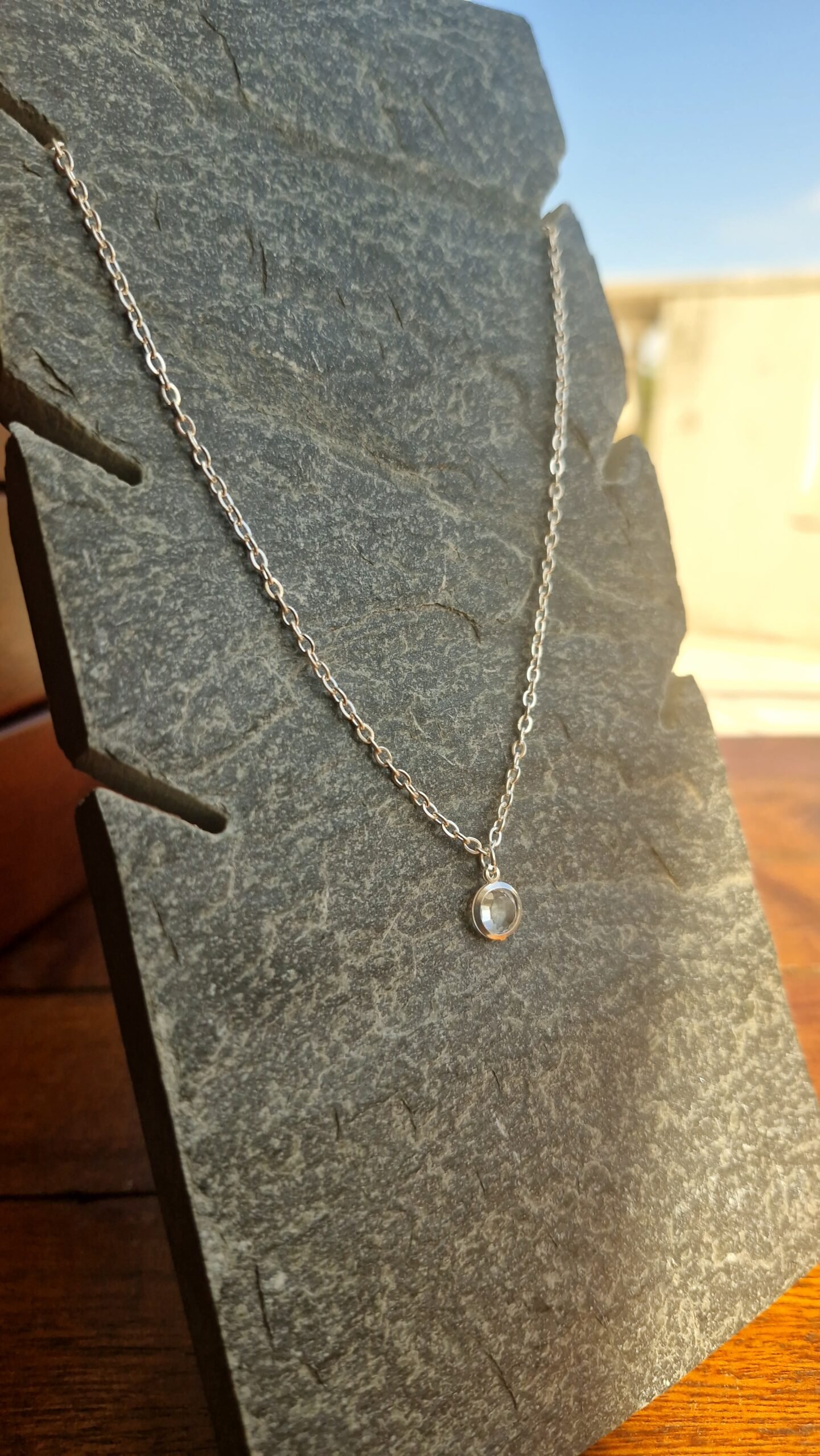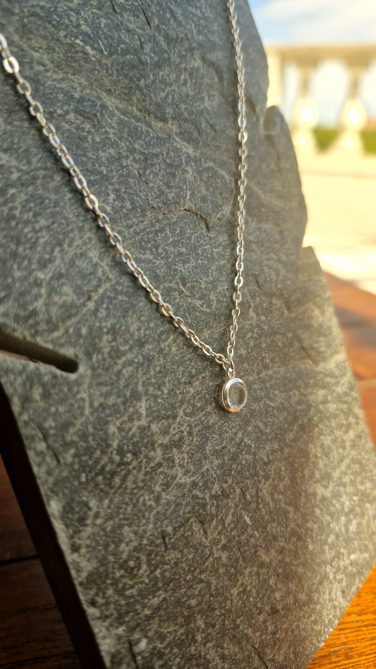 Cadena + dije de acero blanco.
